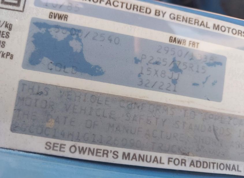 - VIN: 2GCDC14H1G1126090
