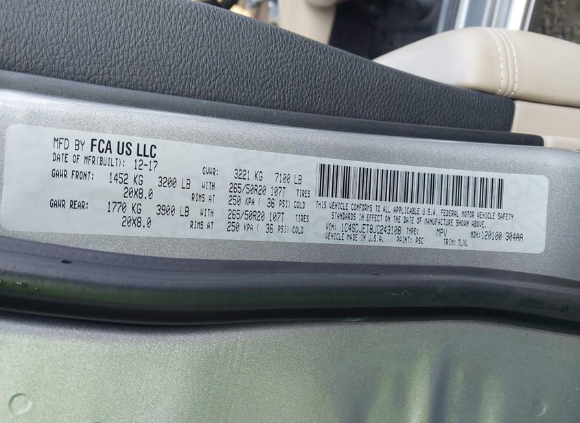 - VIN: 1C4SDJET8JC243108