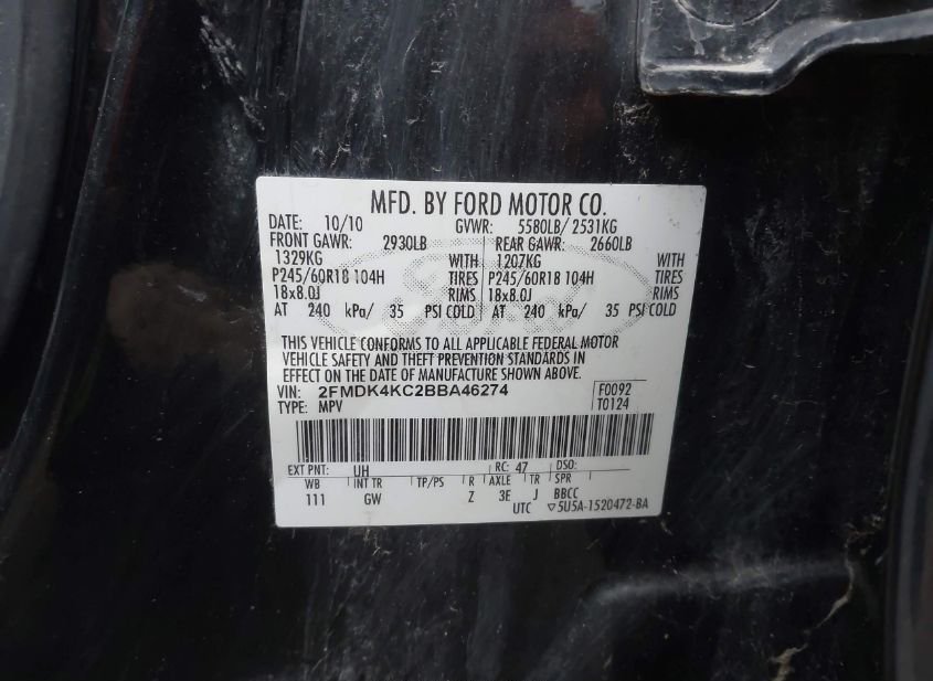 - VIN: 2FMDK4KC2BBA46274