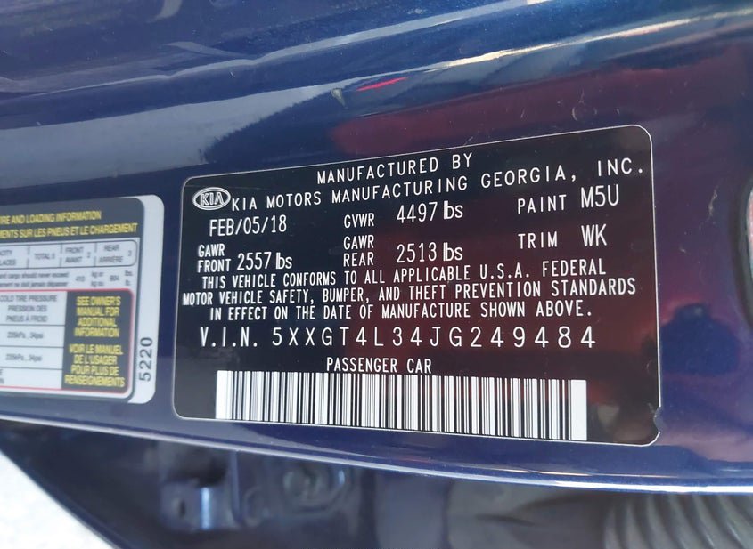 - VIN: 5XXGT4L34JG249484