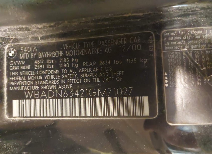 - Название лота: 2001 BMW 540IA