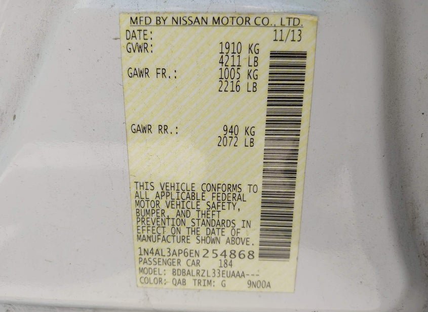 - VIN: 1N4AL3AP6EN254868