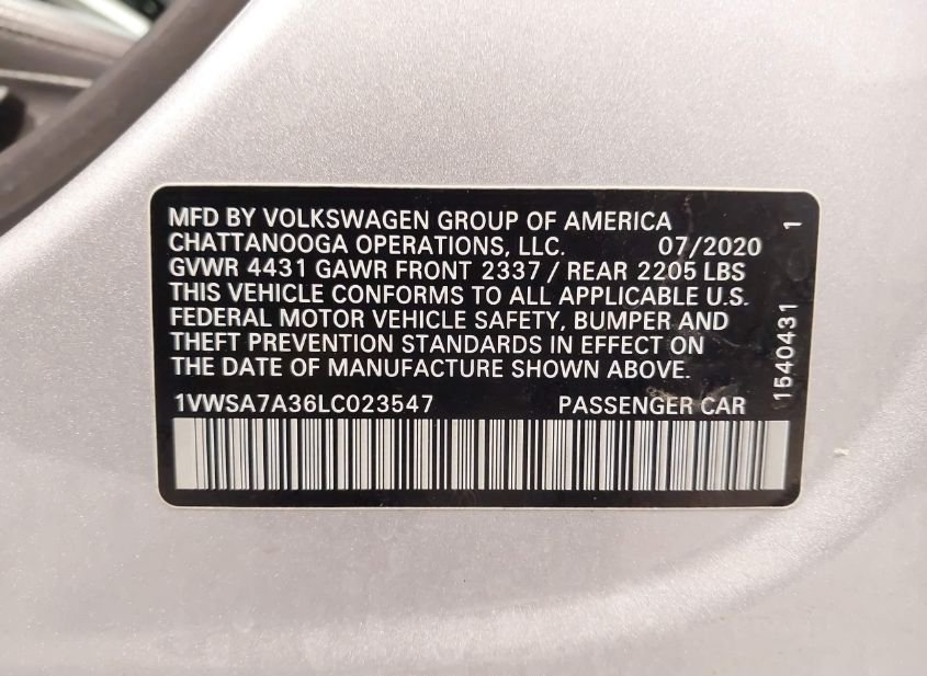 - VIN: 1VWSA7A36LC023547