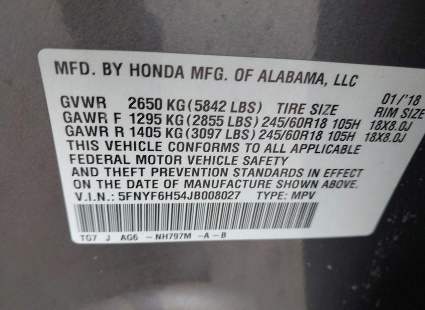 - VIN: 5FNYF6H54JB008027
