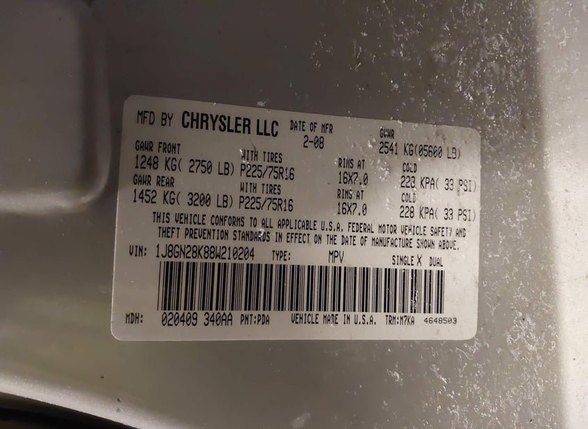 - VIN: 1J8GN28K88W210204