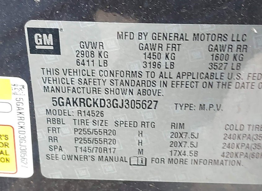 - VIN: 5GAKRCKD3GJ305627