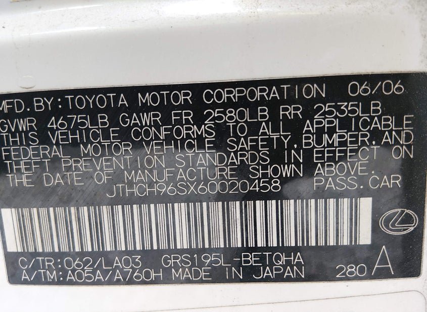 - VIN: JTHCH96SX60020458