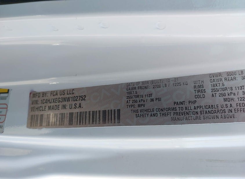 - VIN: 1C4HJXEG3NW102752