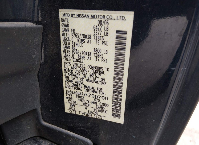 - Название лота: 2007 NISSAN TITAN XE/SE/LE