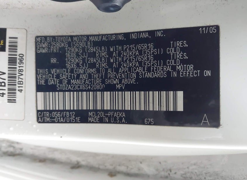 - Название лота: 2006 TOYOTA SIENNA CE