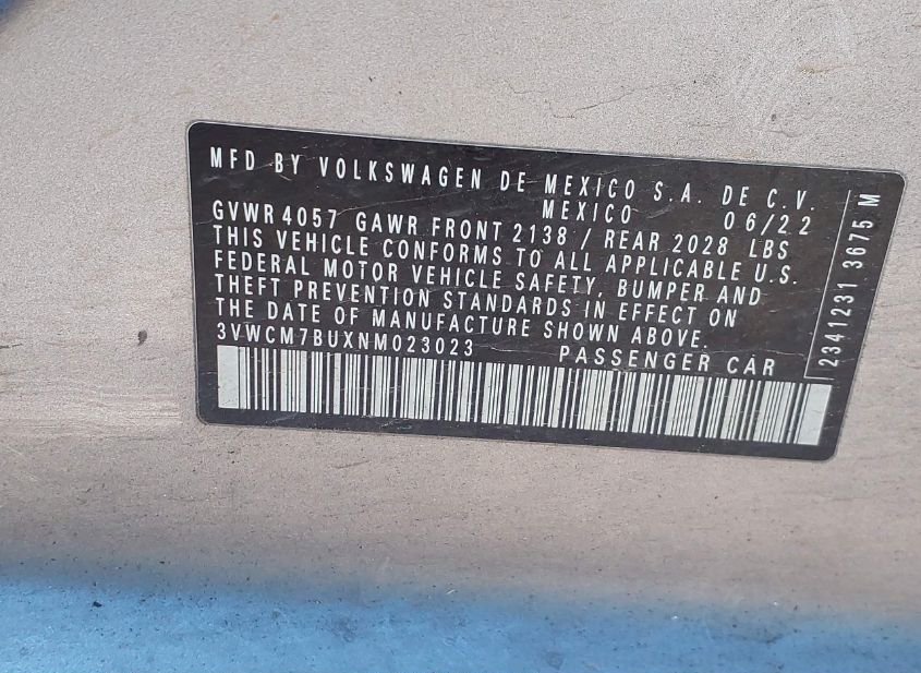- VIN: 3VWCM7BUXNM023023