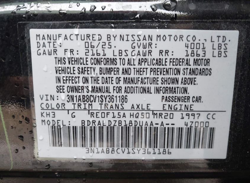 - VIN: 3N1AB8CV1SY361186