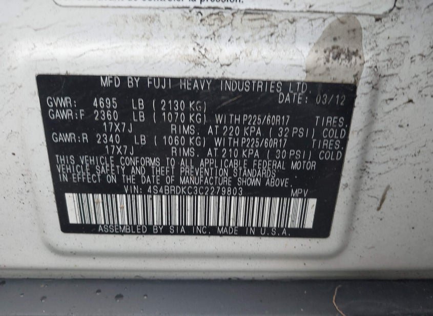 - VIN: 4S4BRDKC3C2279803