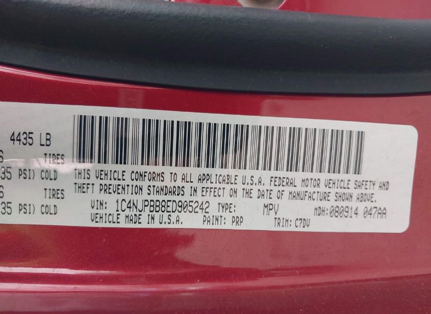 - VIN: 1C4NJPBB8ED905242