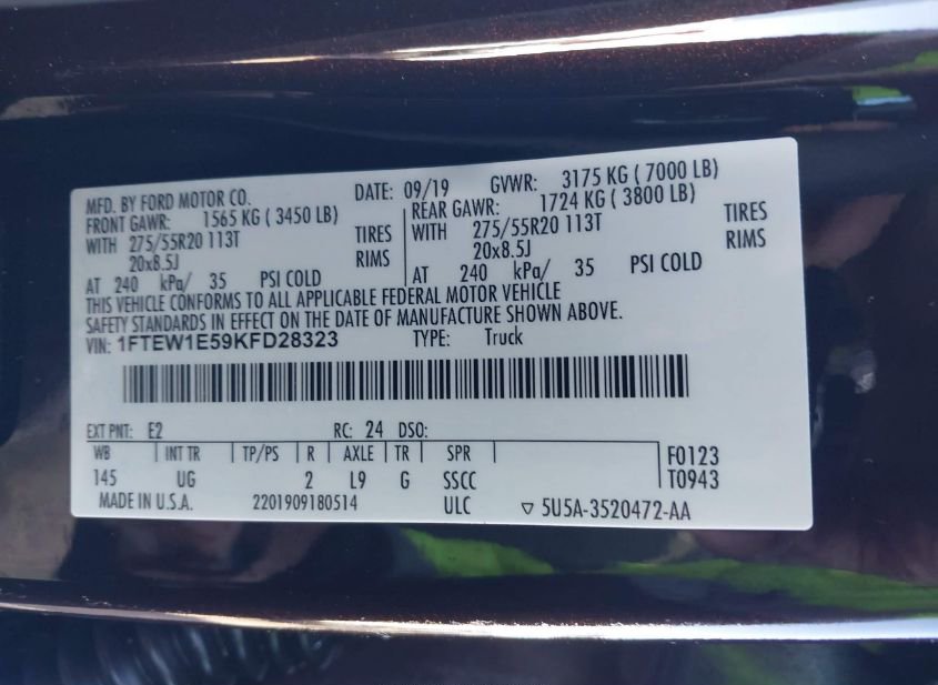 - VIN: 1FTEW1E59KFD28323