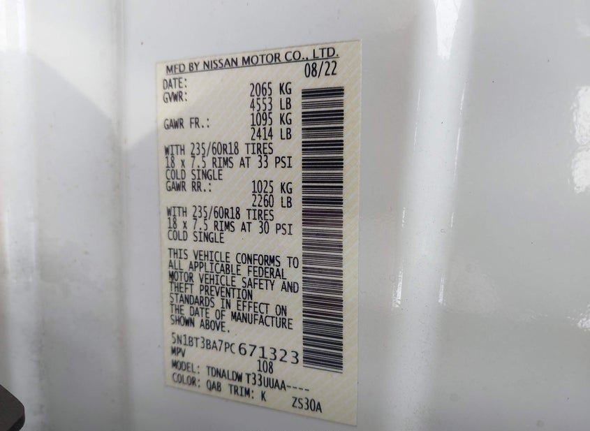 - VIN: 5N1BT3BA7PC671323