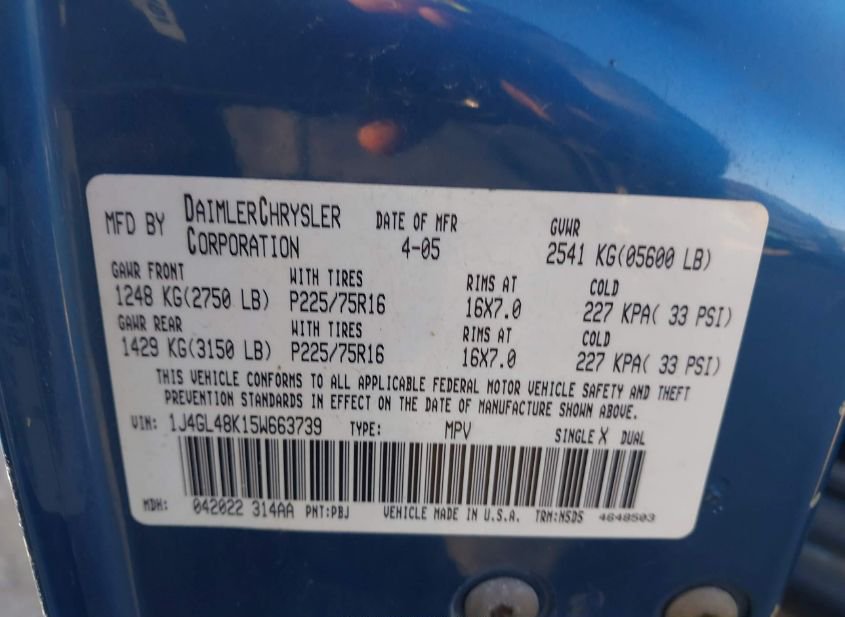 - VIN: 1J4GL48K15W663739