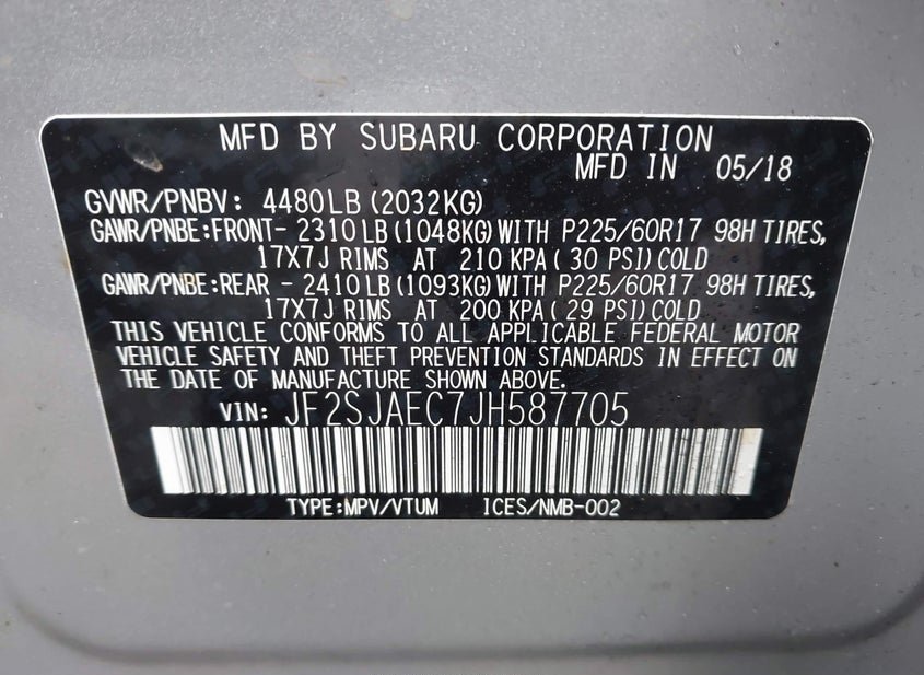 - VIN: JF2SJAEC7JH587705