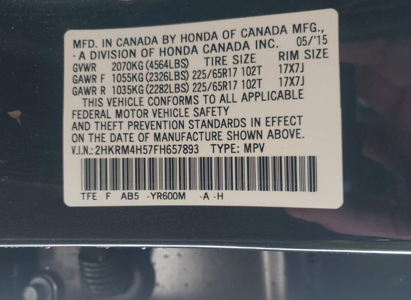 - VIN: 2HKRM4H57FH657893