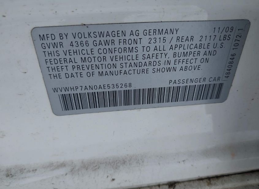 - VIN: WVWHP7AN0AE535268