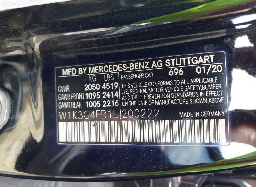 - VIN: W1K3G4FB1LJ200222