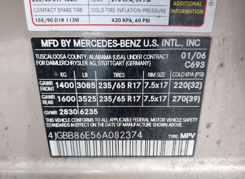 - VIN: 4JGBB86E56A082374