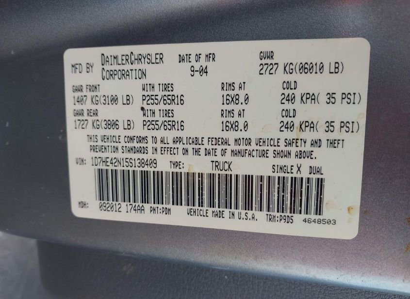 - VIN: 1D7HE42N15S138409