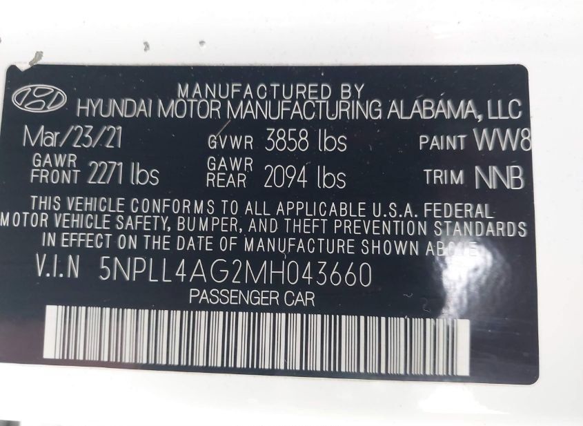 - VIN: 5NPLL4AG2MH043660