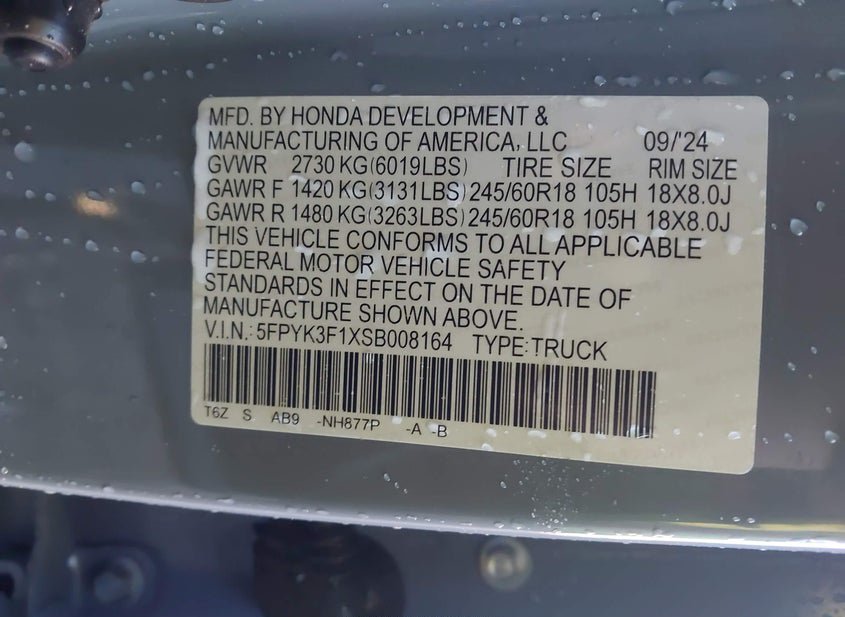 - Название лота: 2025 HONDA RIDGELINE SPORT