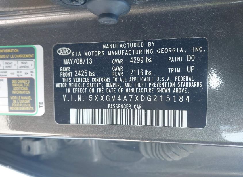 - VIN: 5XXGM4A7XDG215184
