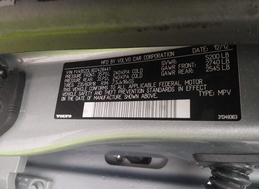 - VIN: YV4952DL9D2428441