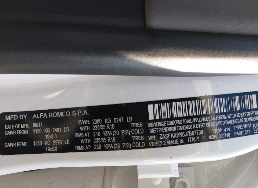 - Название лота: 2018 ALFA ROMEO STELVIO TI AWD