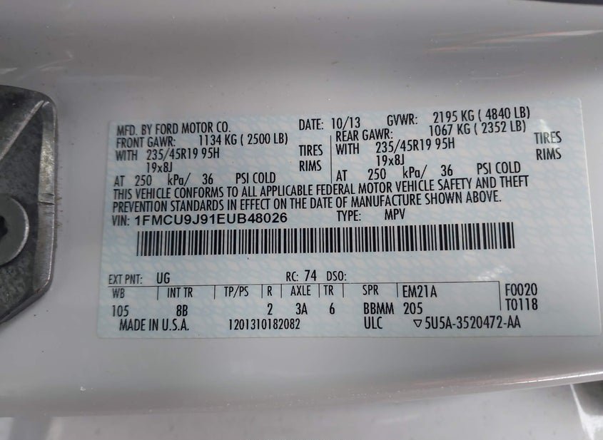 - VIN: 1FMCU9J91EUB48026