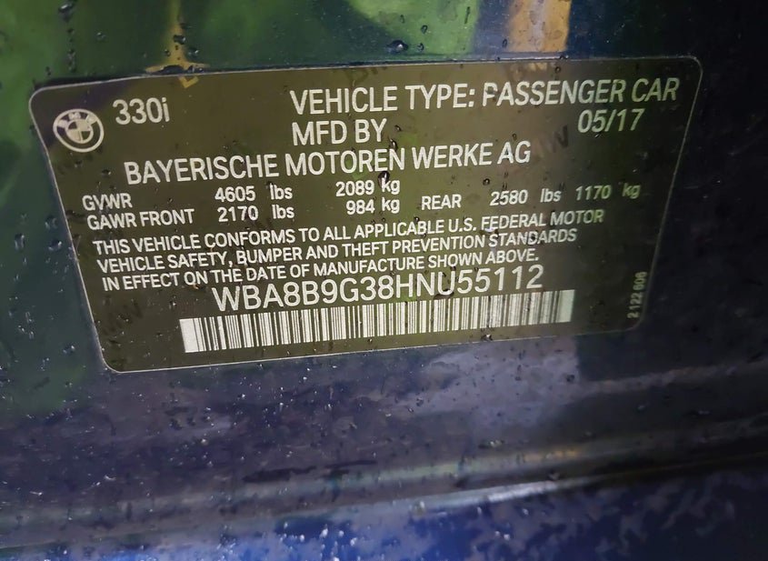 - VIN: WBA8B9G38HNU55112