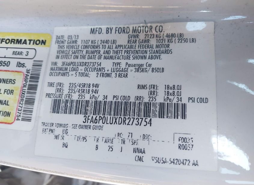 - VIN: 3FA6P0LUXDR273754