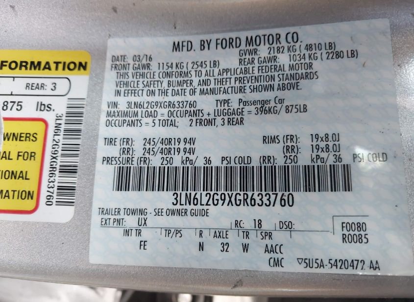 2016 LINCOLN MKZ