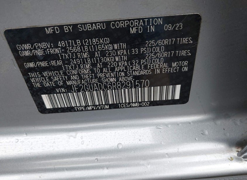 - Название лота: 2024 Subaru Crosstrek 2.0L