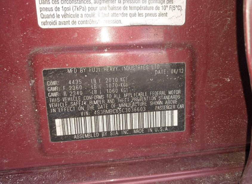 - VIN: 4S3BMBC65C3036603
