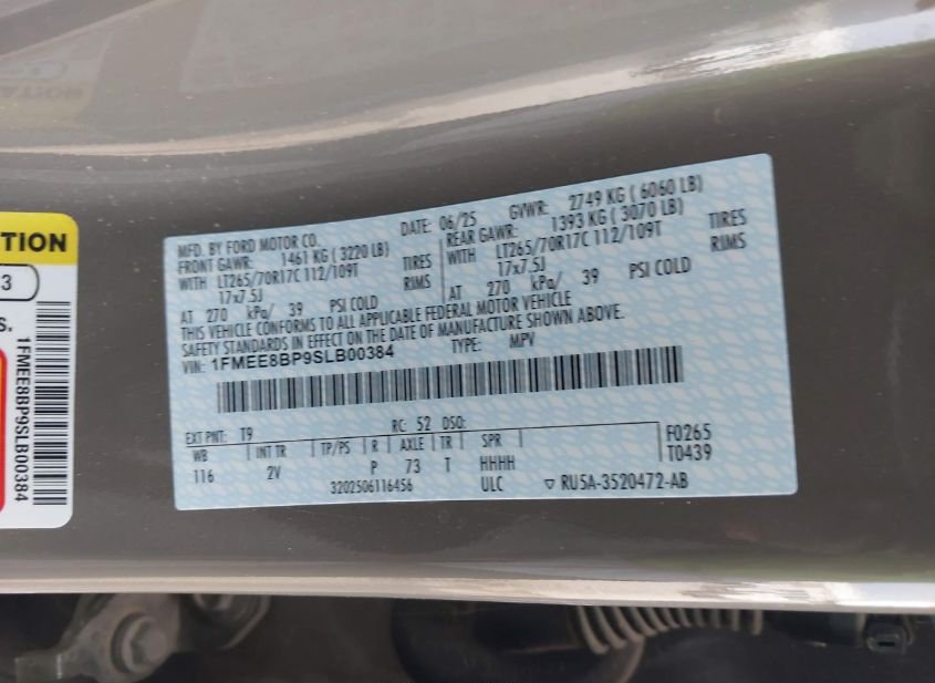 - VIN: 1FMEE8BP9SLB00384