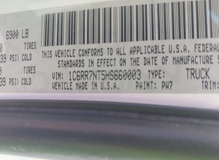 - VIN: 1C6RR7NT5HS660003