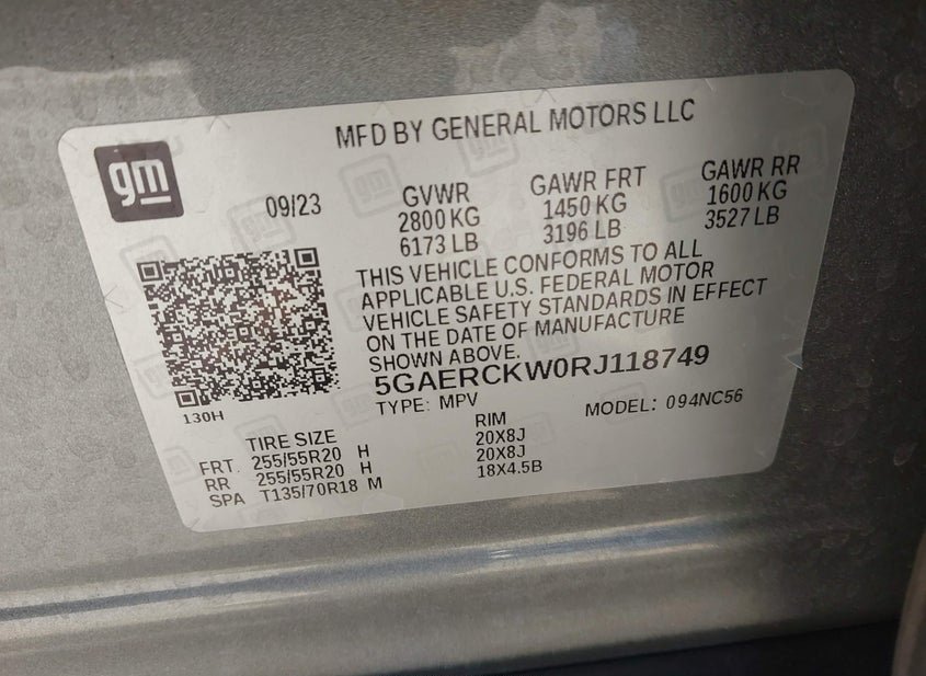 - VIN: 5GAERCKW0RJ118749