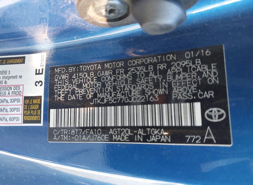 - VIN: JTKJF5C77GJ022163