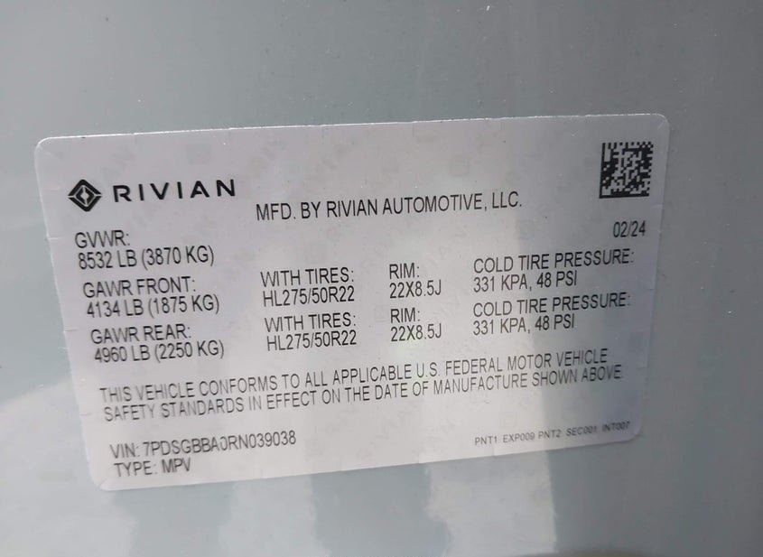 - Название лота: 2024 RIVIAN R1S