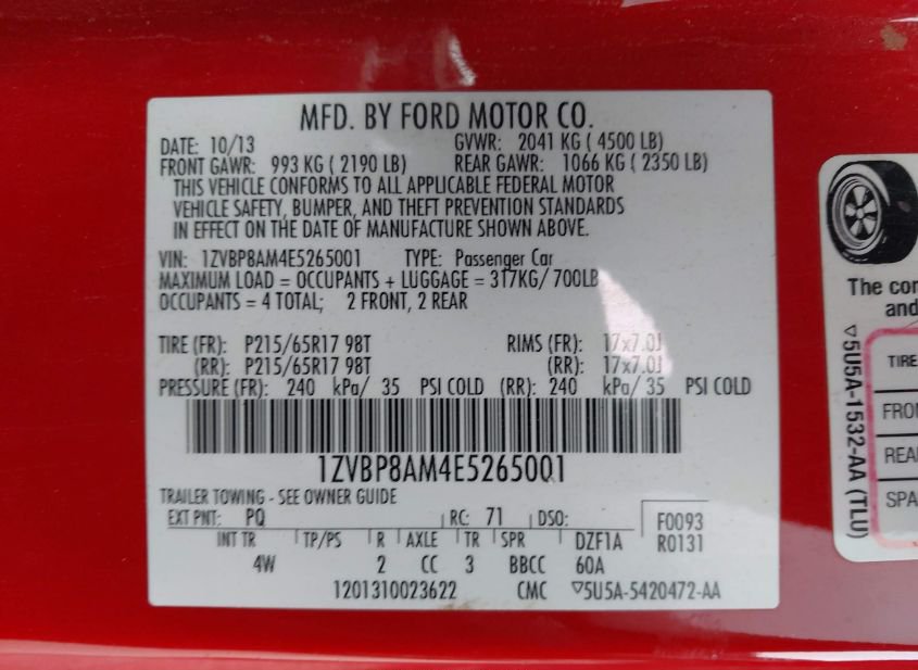 - VIN: 1ZVBP8AM4E5265001