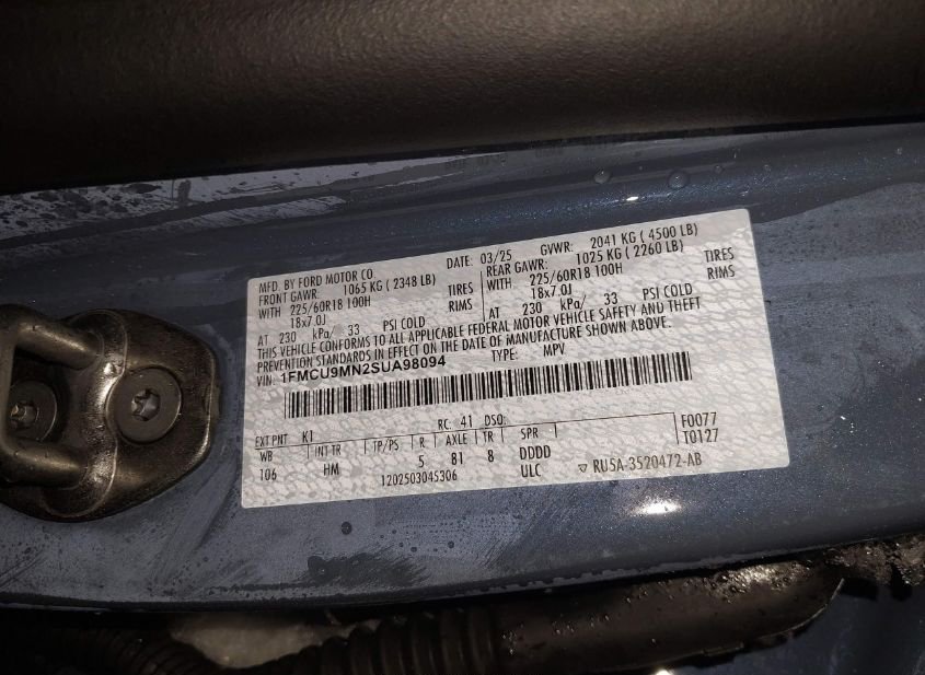 - VIN: 1FMCU9MN2SUA98094