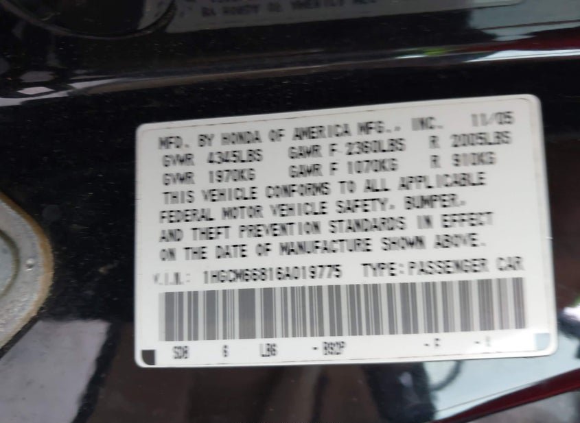 - VIN: 1HGCM66816A019775