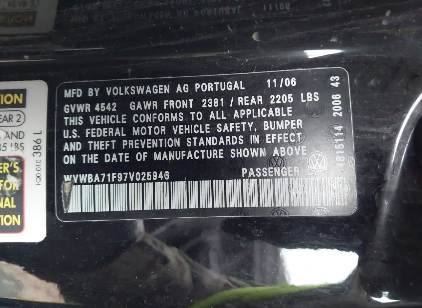 - VIN: WVWBA71F97V025946