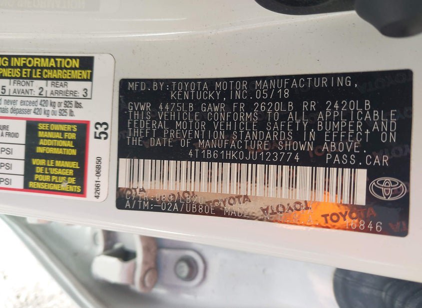 - VIN: 4T1B61HK0JU123774