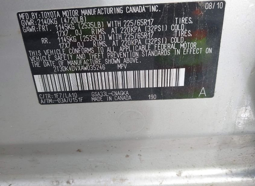 - Название лота: 2010 TOYOTA RAV4 LIMITED V6