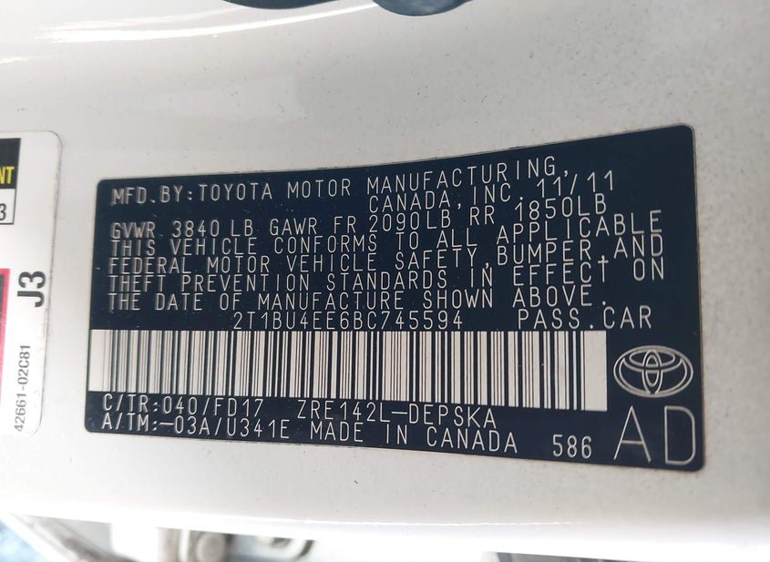 - VIN: 2T1BU4EE6BC745594